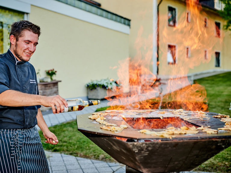 Unsere Qualitätsprodukte aus dem Altmühltal, kombiniert mit unserer Kochleidenschaft, lassen schmackhafte Köstlichkeiten entstehen. Probieren Sie auch am Nachmittag unsere selbstgebackenen Kuchen und Torten aus eigener Herstellung. Genießen Sie mit allen Sinnen. Was gibt es Schöneres als im Urlaub mal so richtig nach Herzenslust zu schlemmen?